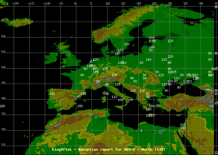 2008-09-18 20:41:59startrek60 (42.9N-26.4E,120cm) ? Strong signal ,but depends by weather.If the weather goes bad the signal sharply goes down.But when rains very hardly then the signal goes very bad or it stops generally.Sunny day-87%